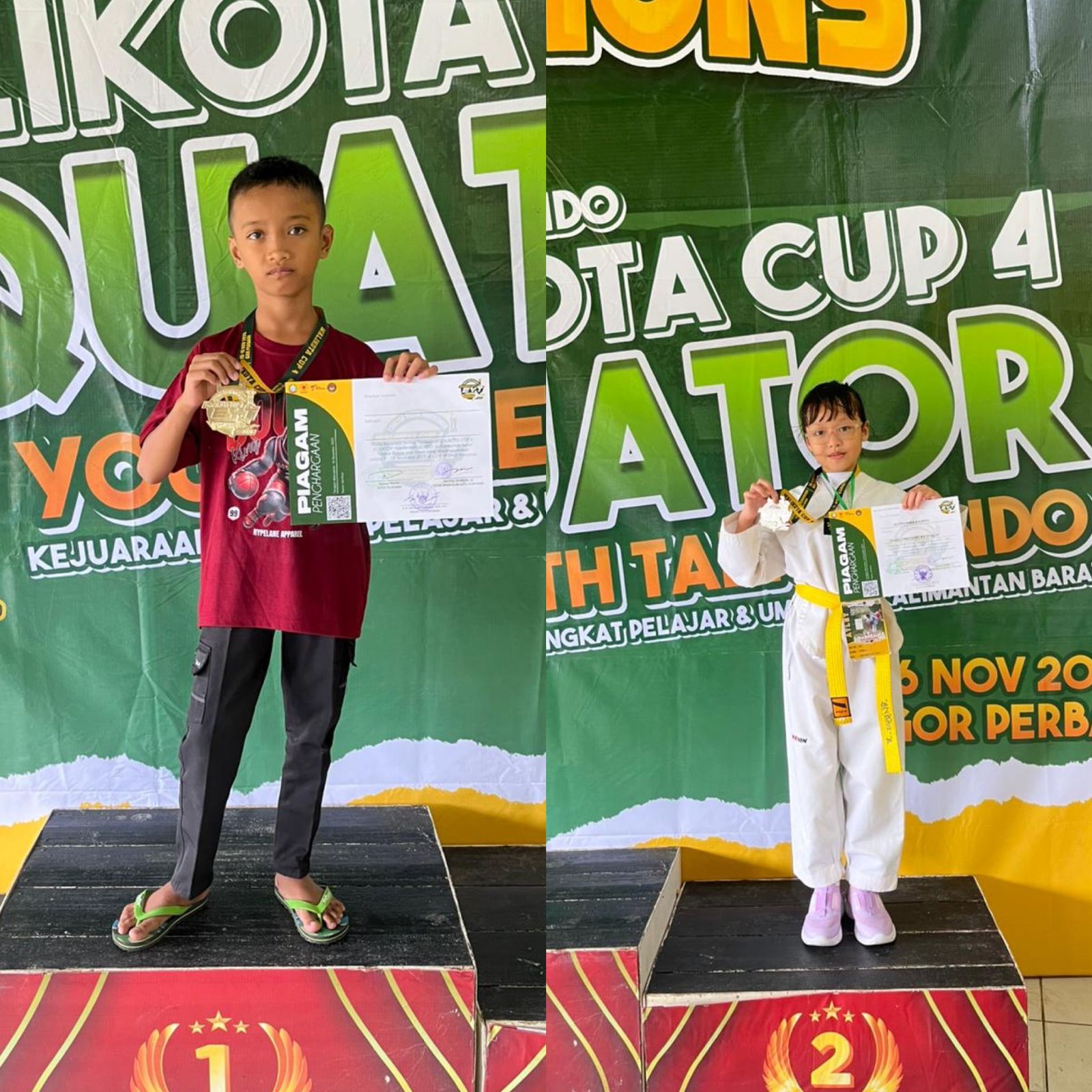 Athaya (Kelas 5): Berhasil meraih Juara 1 dalam Lomba Invitasi Taekwondo Walikota Cup 4 Equator tingkat pelajar se-Kalimantan Barat.
